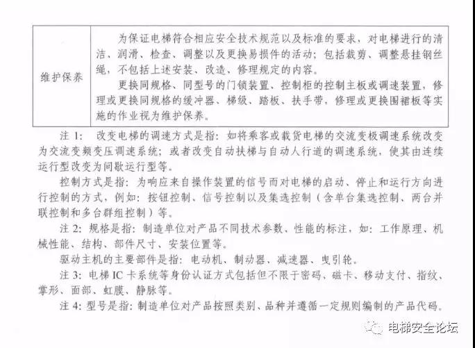 6.将原来重大修理中很多内容大幅度调整为一般修理项目。更换同规格的零部件,一般来说,与安装无异,理论上一个合格的安装单位是具备此类能力的,调整为一般修理项目,在保证可以追溯的同时,秉承企业可以做好的事情交给企业自己做,市场的功能由市场发挥的原则,尽量减少企业的制度性成本。